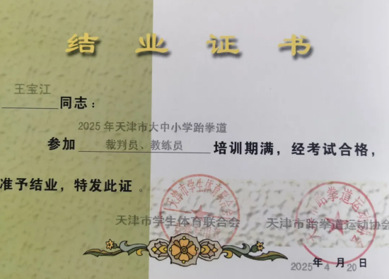 此次2025年天津市裁判员、教练员培训活动由天津市举重摔跤柔道拳击跆拳道运动管理中心精心组织策划,于4月19日在天津工业大学开班。我校体育教师王宝江受邀参加了本次教练员培训,跆拳道队员李婕、翟嘉耀两位同学则是前往学习了裁判员的相关执裁内容。