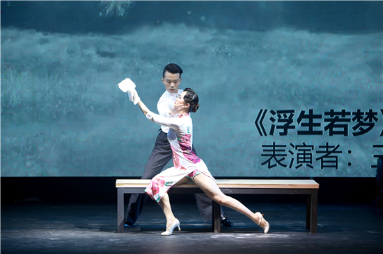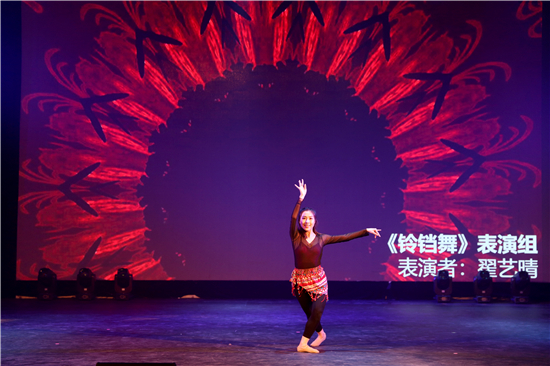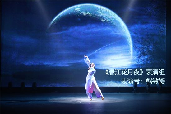 《春江花月夜》《铃铛舞》灵动活泼、俏皮可爱,用柔软的肢体为观众描摹了一副动人的画卷;双人舞《只为途中与你相遇》《浮生若梦》配合默契老练,双人合跳同时展示刚健与柔美,进退之间诠释别样的绽放,令观众身临其境。