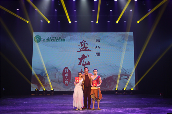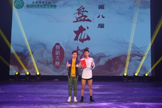 展现青春风采,舞动梦想舞台,2019年4月9日,天津体育学院运动与文化艺术学院第八届“盘龙杯”舞蹈大赛决赛在大讲堂音乐剧场精彩上演。莅临现场的领导和评委嘉宾有:北京现代演艺集团总经理孙羽郎,天津体育学院运动与文化艺术学院副校长陈红,副校长、舞蹈学院院长马斌,天津盘山旅游局、天津山水盛典文化发展有限公司、天下盘山总导演鲁杰,执行导演赵一霖,国家艺术基金音乐剧《天地运河情》执行导演郑丽娜、范宇鹏,舞蹈学院院长助理、编导系系主任陈文童,表教系系主任焦姣,国标系系主任佟世宇以及舞蹈学院专业教师。流光溢彩,燃烧激情,天艺学子们用优美的舞步在舞台上尽情展现着自我风采。