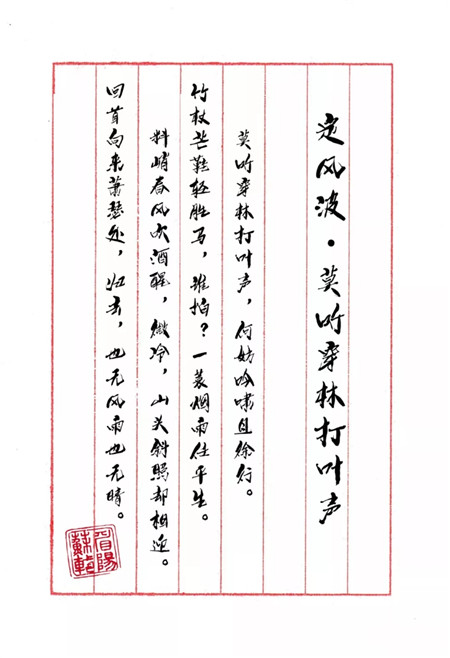 ——《定风波·莫听穿林打叶声》苏轼(宋)